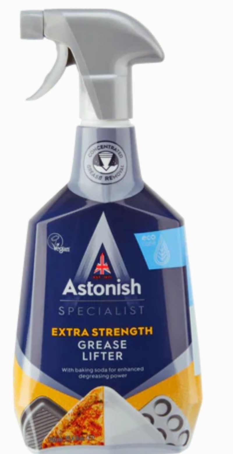 Bình xịt tẩy dầu mỡ & cháy khét Astonish C6750 sản xuất 100% tại Anh Quốc, theo phương thức đặc biệt của baking soda để loại bỏ mạnh mẽ các vết bẩn dầu mỡ và những vết thức ăn bị cháy khét bám trên bề mặt các thiết bị nhà bếp. Chuyên dùng vệ sinh các bề mặt bếp gas/từ/hồng ngoại, tủ bếp, máy hút khói/hút mùi, mặt đá Ceramic, granite, sàn gạch men, bồn rửa, vòi nước, và lau kính ...