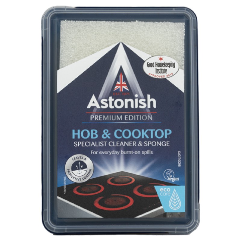 Astonish C8630 là kem tẩy chuyên dụng cho mặt kính bếp như bếp điện từ/bếp hồng ngoại/bếp gas. Với các thành phần từ xà phòng thảo thực vật, không hóa chất độc hại cùng với phương thức đặc biệt nhất, giúp làm sạch nhanh chóng các vết bẩn dầu mỡ, các vết cháy khét bám khô trên mặt bếp do thực phẩm trào ra trong lúc nấu nướng. Astonish C863 có hiệu quả cao, vượt trội trong thời gian ngắn, hơn hẳn các loại kem tẩy rửa thông thường khác.